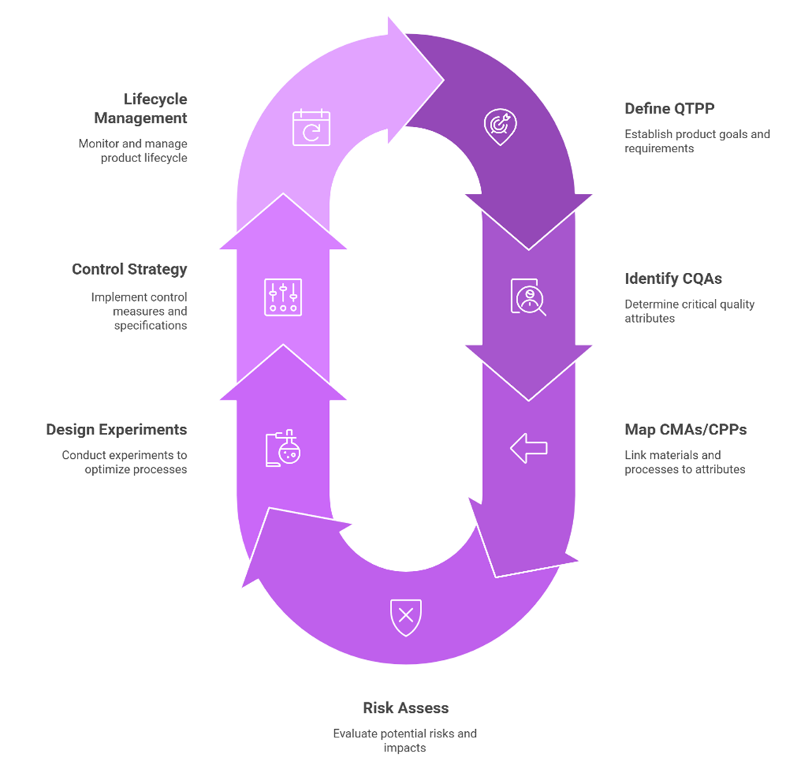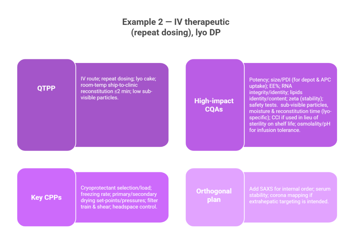 - QTPP endpoints (delivery route, dose/frequency, target organ)