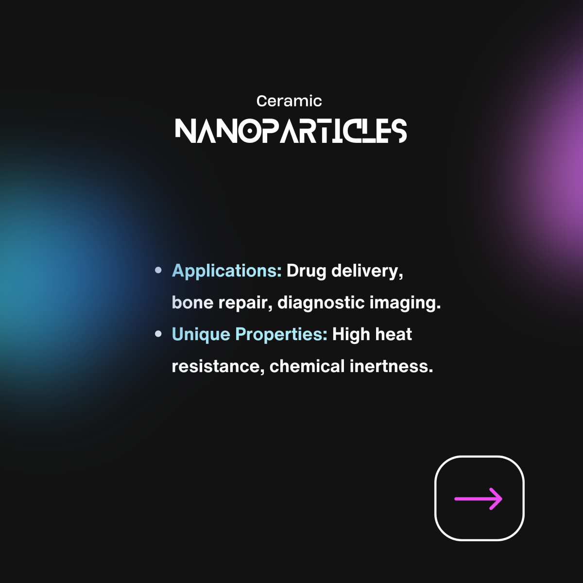Ceramic nanoparticles are inorganic solids made of oxides, carbides, carbonates, and phosphates. They are known for their high heat resistance and chemical inertness.