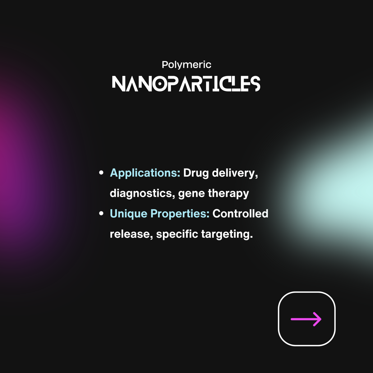 - Polymeric nanoparticles (e.g. PLGA, PLA, Dendrimers, etc.)